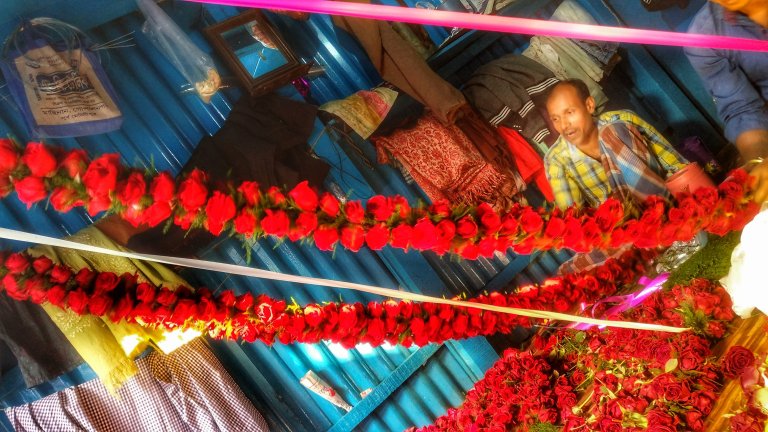I interacted with some flower sellers. Most of them travel from suburbs. They leave home in wee hours and travel two to three hours with their highly delicate and perishable goods. The market opens at 3 a.m so it’s best to reach as early as possible to see the fresh stock of blooms. Some sellers stay overnight as well so virtually flowers are available 24×7 at the market.